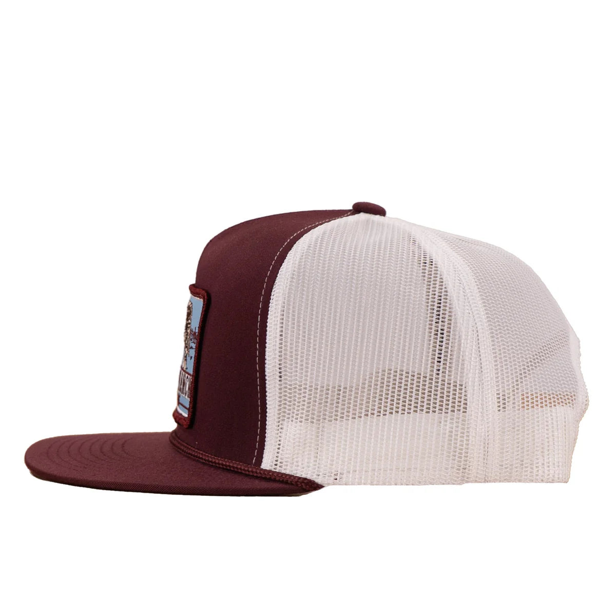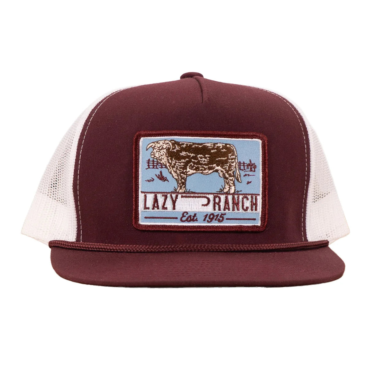 Lazy J Ranch Maroon & White Blue Bull Trap Patch Classic Five Panel Trucker Hat